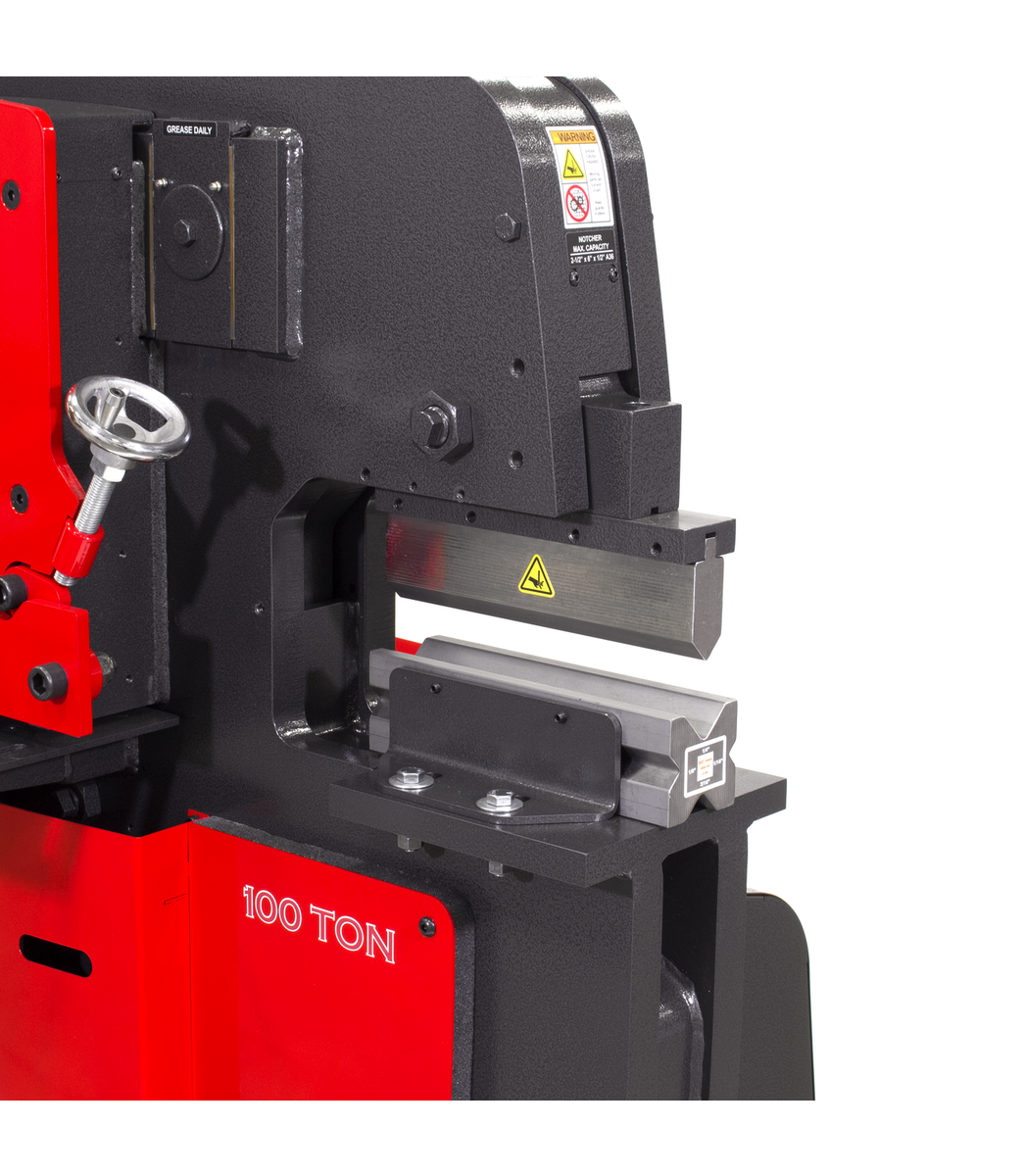 Fabricate brackets, frames, pans and tanks with this Brake with 4-Way Die. Includes a standard punch that allows 1/16", 1/8", 3/16" and 1/4" material to be formed to a 90° angle. Easily create repeatable bends when paired with the Press Brake Back Gauge.