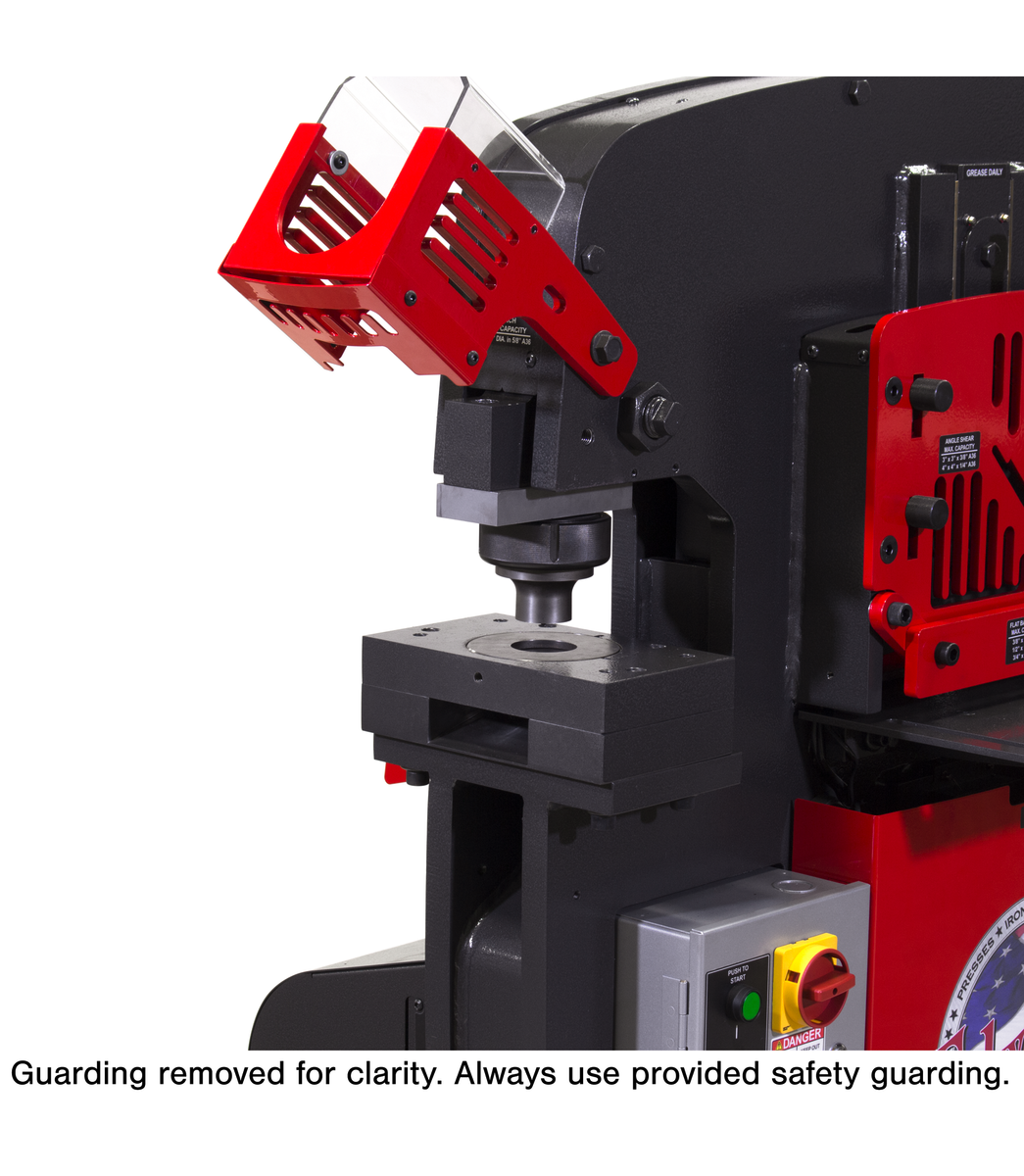 The 241 Punch Assembly accommodates punch & die sets in various shapes and sizes from 1" up to 4". Punch large holes and slots in anything from sheet metal to steel plate.