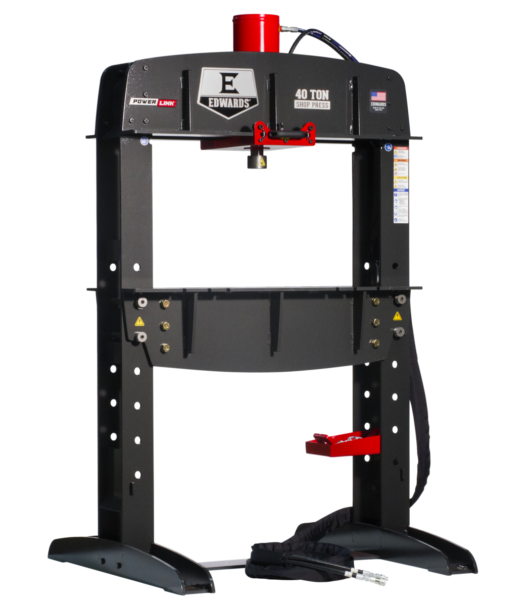 The 40 Ton Shop Press is rugged and economical. With a rolling cylinder, pressure gauge, open-sided design, and hand/jog controls, it is an easy to use, powerful machine. Able to accept standard & custom tooling the smooth and precise pressure is perfect for any shop. Must be run off an Edwards Ironworker with PowerLink ™ System or Portable Power Unit.