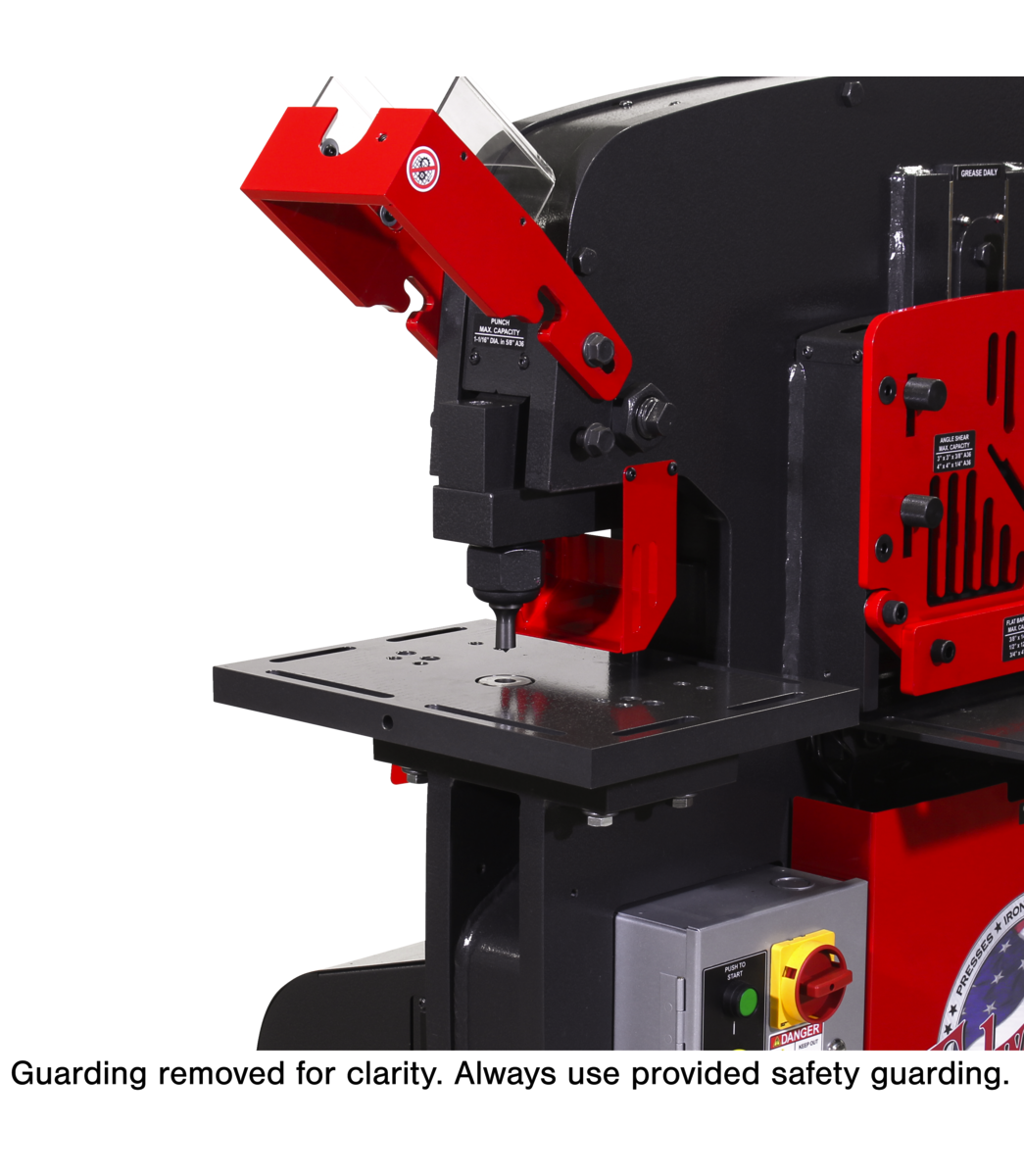 The 1" x 12" x 16" table replaces your installed Die table to add speed and precision to your Punch Workstation. Compatible with the Edwards 100 Ton Deluxe Ironworker. Includes adjustable fences and handles to quickly and easily guide your material for perfect repeatable actions.