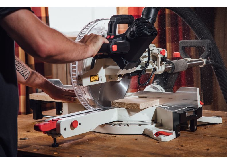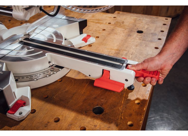 - Dual bevel capability with up front controls to maximize cutting of compound angles