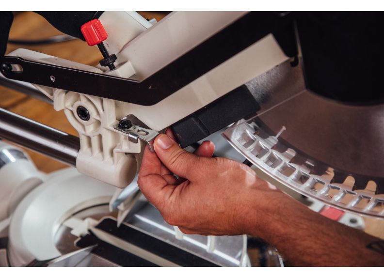 - Change miter angles quickly with the single motion thumb lever