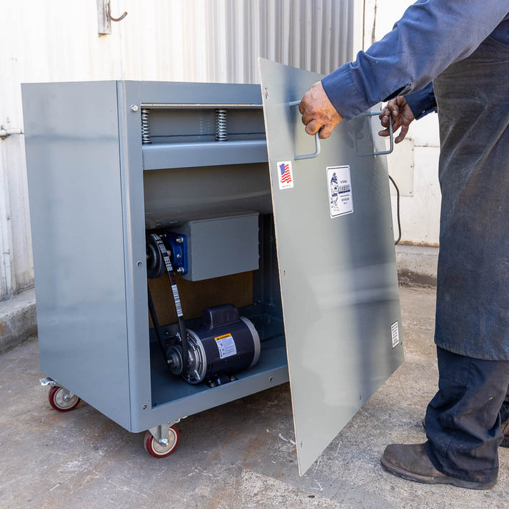- Fully enclosed tumbling tank for quiet operation with the same versatile 3 cubic foot tank size that our customers know and love