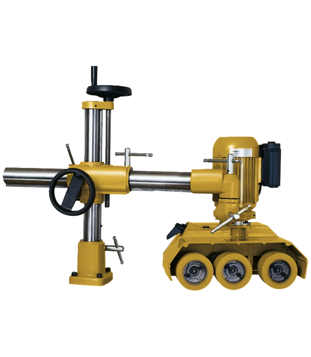 These rugged, heavy-duty Stock Feeders feature continuous-duty motors that transfer power from the gear box to the feed roller through the roller chain and sprockets, providing superior positive feeding for all types of materials. The fully adjustable support columns feature moveable universal joints and heavy locking mechanisms that lock the feeder in horizontal, vertical, or angle feed positions. Solid cast iron construction of bodies, bases and universal joints provide stability with vibration-free feeding.