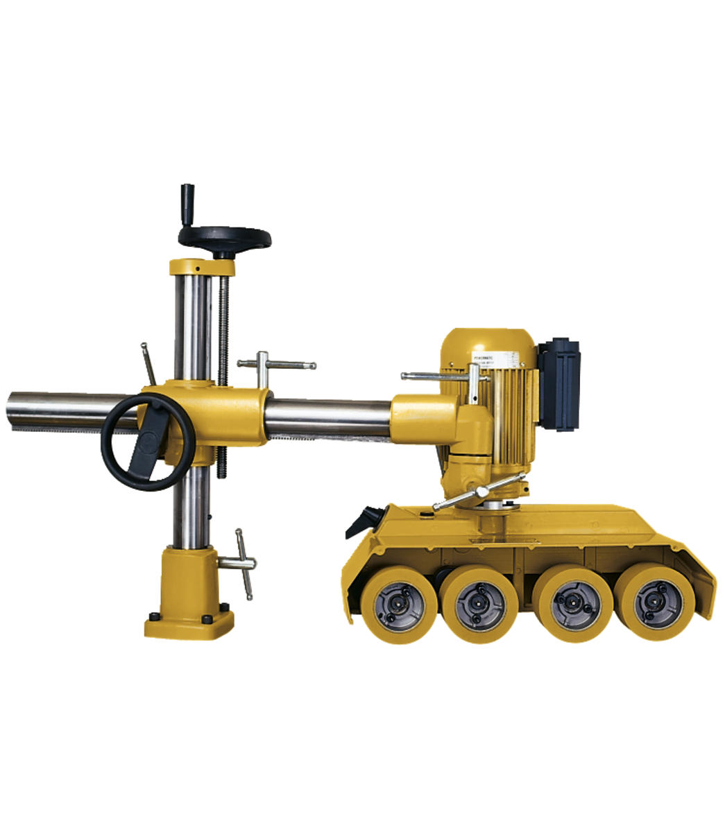 These rugged, heavy-duty Stock Feeders feature continuous-duty motors that transfer power from the gear box to the feed roller through the roller chain and sprockets, providing superior positive feeding for all types of materials. The fully adjustable support columns feature moveable universal joints and heavy locking mechanisms that lock the feeder in horizontal, vertical, or angle feed positions. Solid cast iron construction of bodies, bases and universal joints provide stability with vibration-free feeding.