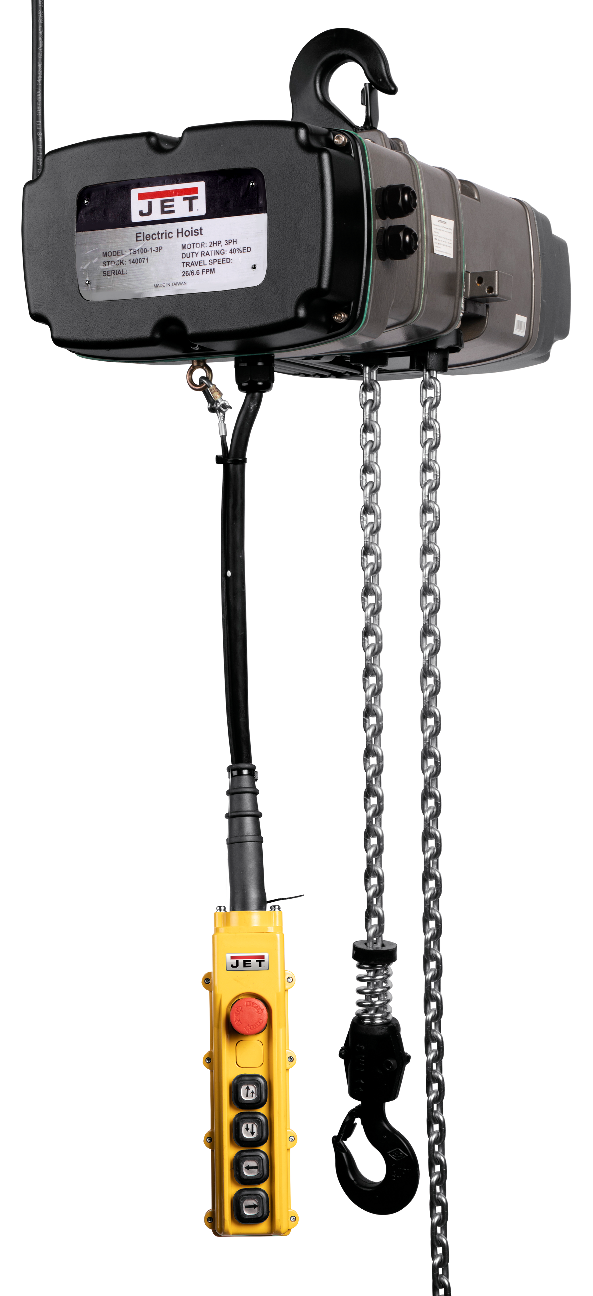 JET® TS Series Electric Hoist is designed and built for safety, durability, and efficient operation in the toughest industrial applications. Designed with two speeds you can move materials quickly and safely. Allowing your material to then slow down to be placed exactly where you need it without the excessive bump firing. Additionally, a two in one mechanical brake and overload protection assures you of safety first on the jobsite. This new system will brake quickly while providing protection from overloading the hoist. We engineered this hoist to keep the operator safe and prolong the life of your tool. Lastly a patented gear limit switch will allow precise control of the stopping point in both directions. This feature will prolong the life of the hoist and help avoid possible damage to the unit. All of this with safe lifting speeds up to 33 feet per minute and as low as 3 feet per minute to give you the ability to be more efficient with every load. The TS Series is available from 1/2 Ton to 5 Ton capacities. Let’s Get to Work.